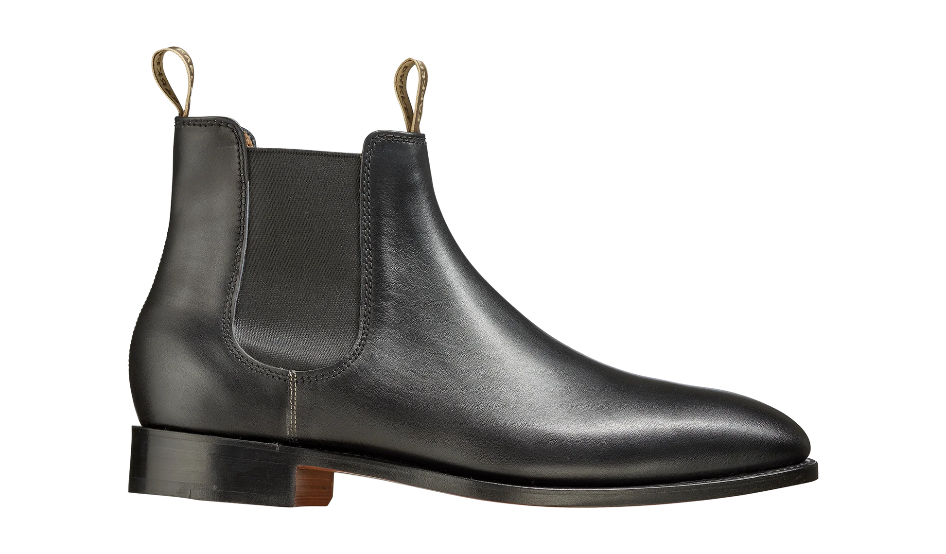Barker's Mansfield is a classic English Chelsea boot, made using finest European calf leather constructed for comfort, breathability and durability. It features full leather insole and lining, hand-stitched detailing and either a Dainite or a full leather sole. This shoe is designed and made in Northampton, England.