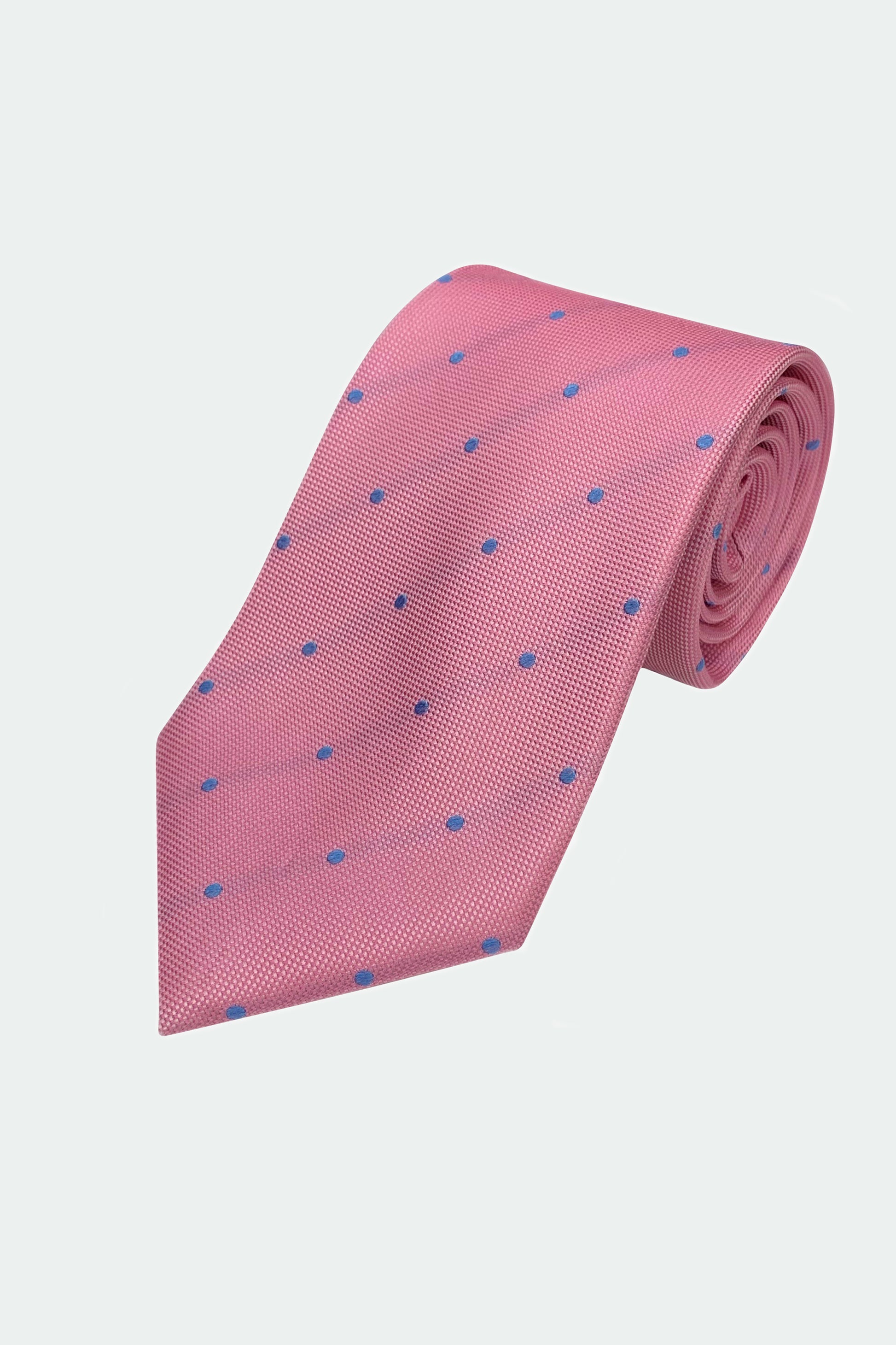 Our Pink Pin Dot Navy Tie is Hand Woven and 100% pure silk. It features a pin dot pattern throughout, and a keepers loop located on the reverse side of the tie. Designed in London and hand made in